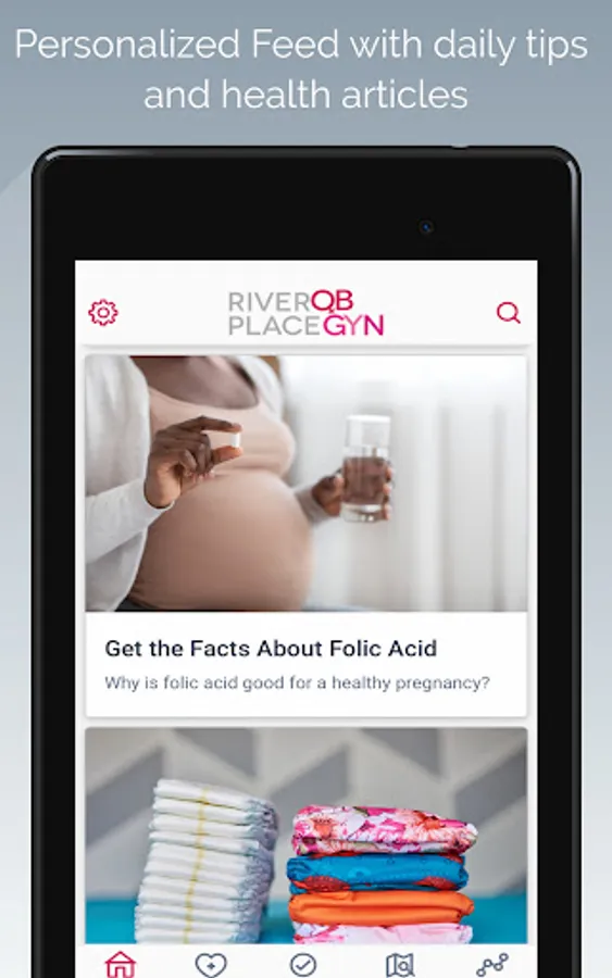 There is a lot to keep track of when you are pregnant or have a newborn. The Healthy Baby with River Place app will help you stay on top of your health throughout pregnancy and your baby’s first 2 years, with personalized support for your parenting journey.