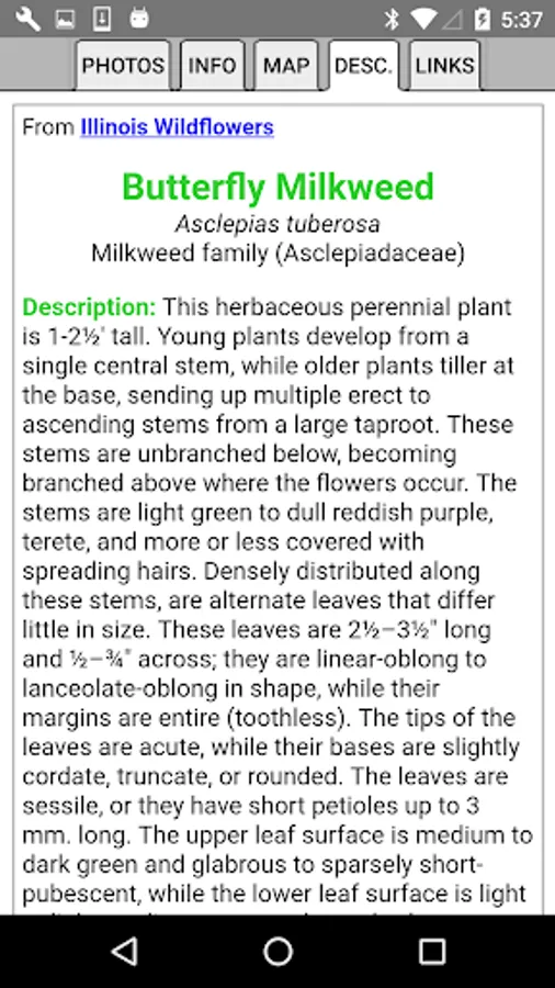 This App helps find and identify plants. When you give the App information about a plant, such as its location, flower color and the time of year, the App will quickly show you which plants match your selections.