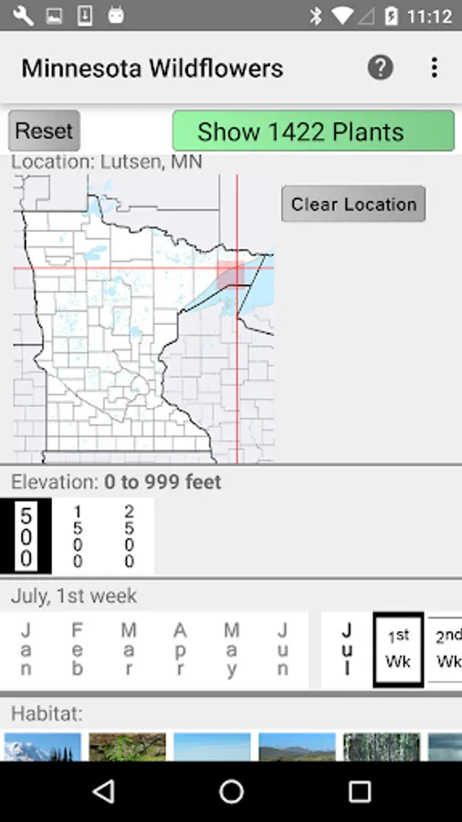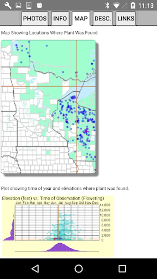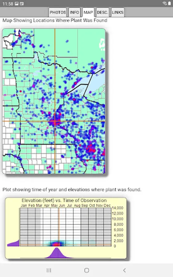 The App includes 2,931 species of plants found in Minnesota. Overall, 1,367 are "Wildflowers", 216 are shrubs, 164 are broadleaf trees, 24 are conifers, 39 are vines, 462 are grass-like, 94 are fern-like, 289 are moss-like, and 368 are lichen.