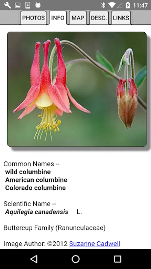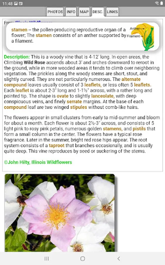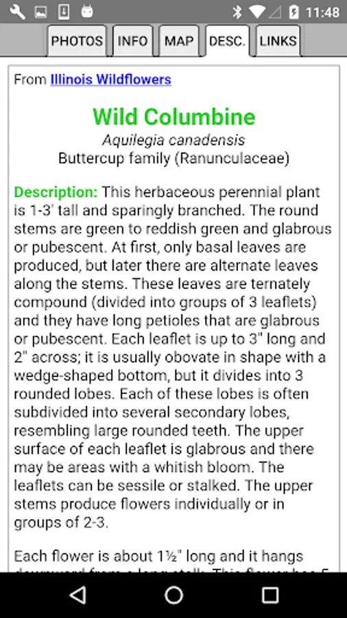 This App helps find and identify plants. When you give the App information about a plant, such as its location, flower color and the time of year, the App will quickly show you which plants match your selections.