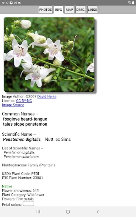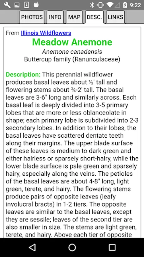 This App helps find and identify plants. When you give the App information about a plant, such as its location, flower color and the time of year, the App will quickly show you which plants match your selections.