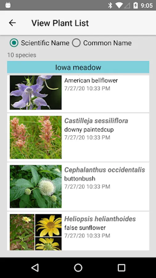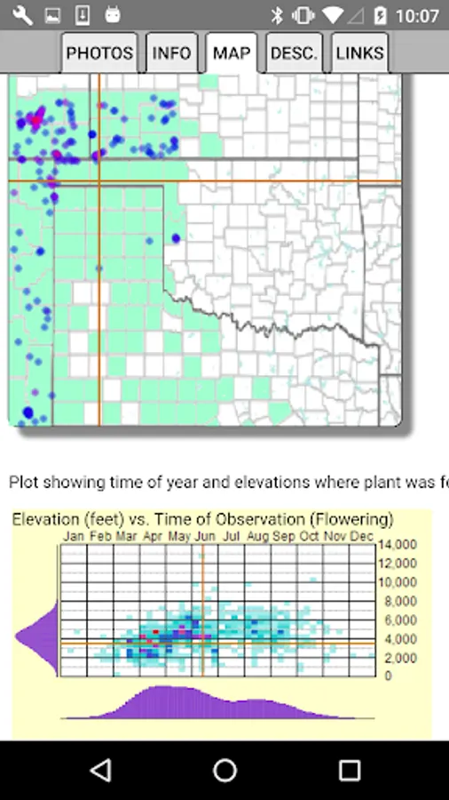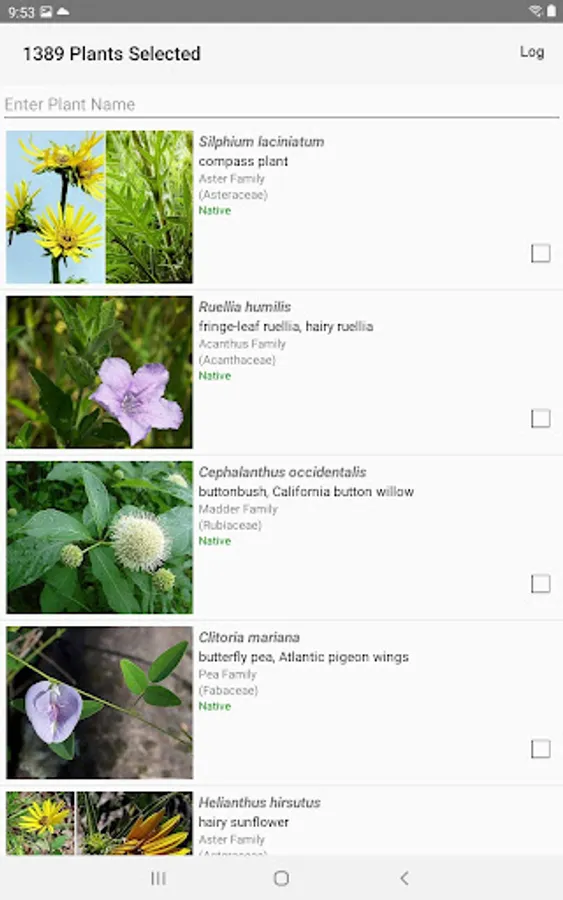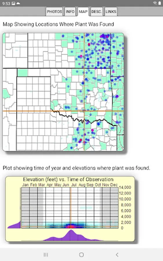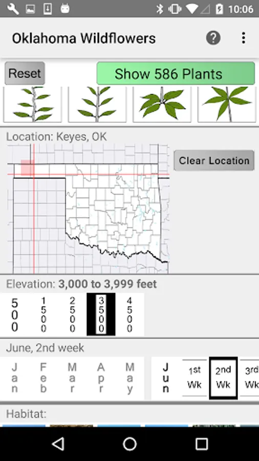 The App includes 3,045 species of plants found in Oklahoma. Overall, 1,694 are "Wildflowers", 224 are shrubs, 182 are broadleaf trees, 16 are conifers, 90 are vines, 13 are cactus, 529 are grass-like, 67 are fern-like, 167 are moss-like, and 193 are lichen.