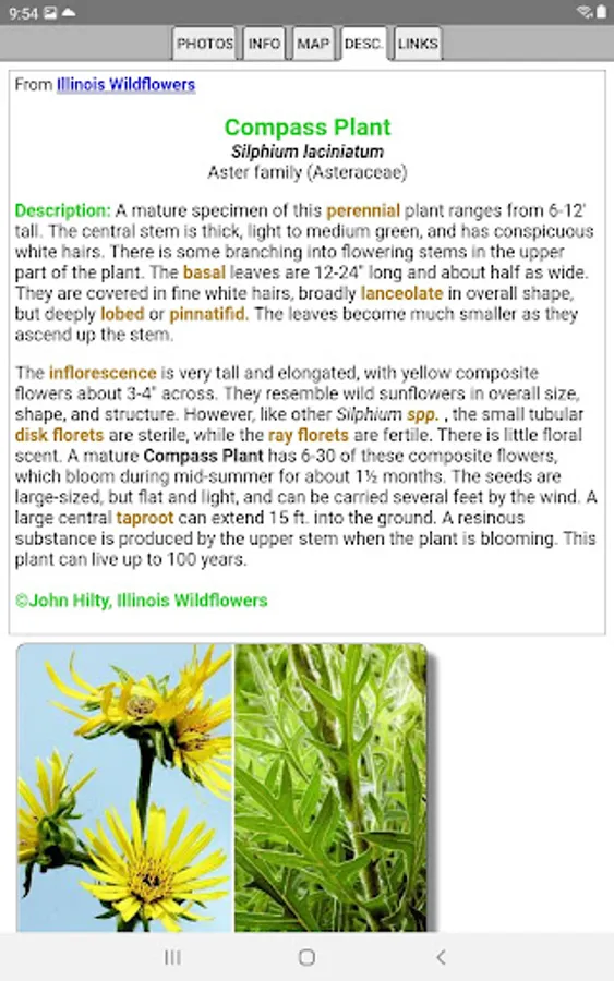 This App helps find and identify plants. When you give the App information about a plant, such as its location, flower color and the time of year, the App will quickly show you which plants match your selections.