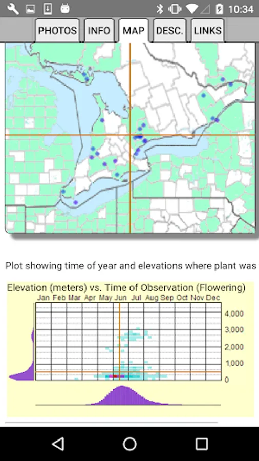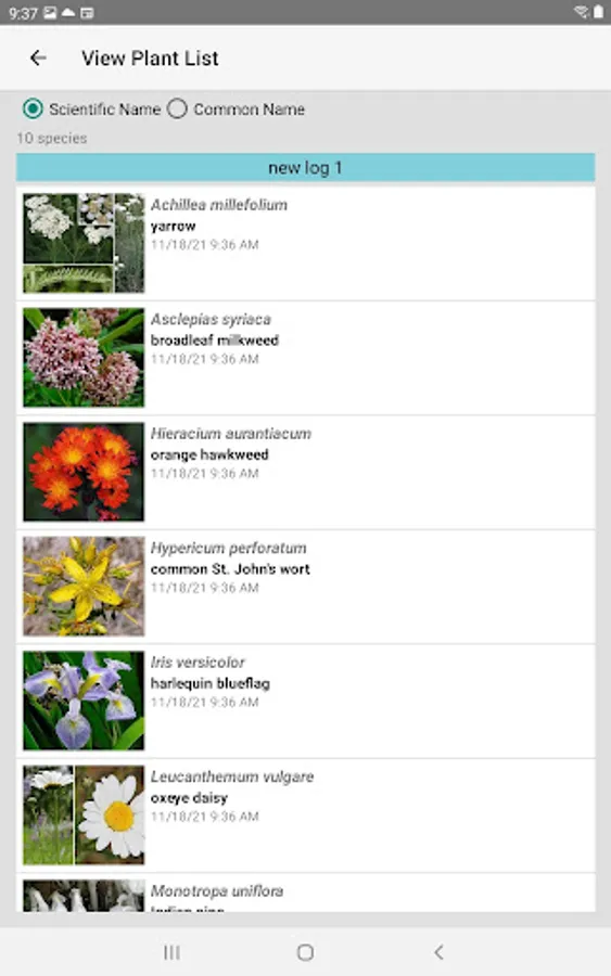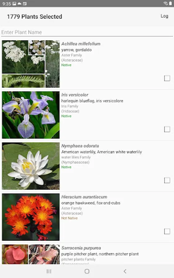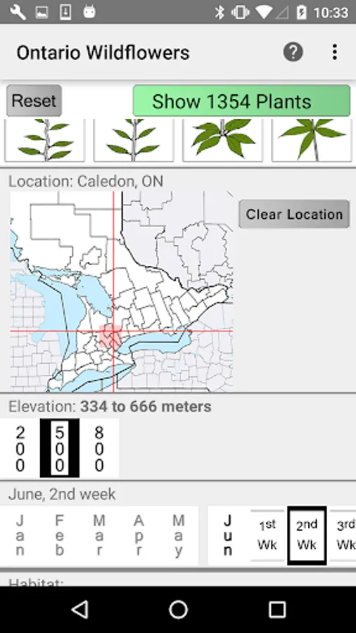 The App includes 3,243 species of plants found in the Lower Ontario area. Overall, 1,471 are "Wildflowers", 261 are shrubs, 190 are broadleaf trees, 25 are conifers, 45 are vines, 531 are grasses and sedges, 106 are ferns, 345 are lichen and 371 are moss.