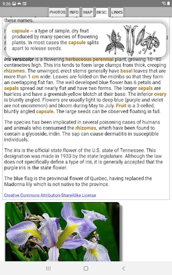 This App helps find and identify plants. When you give the App information about a plant, such as its location, flower color and the time of year, the App will quickly show you which plants match your selections.