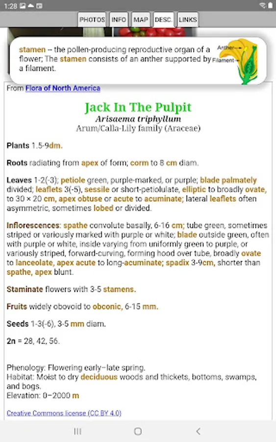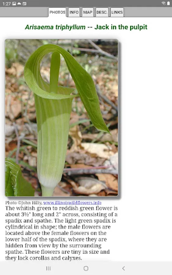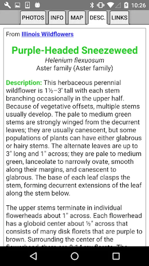 This App helps find and identify plants. When you give the App information about a plant, such as its location, flower color and the time of year, the App will quickly show you which plants match your selections.
