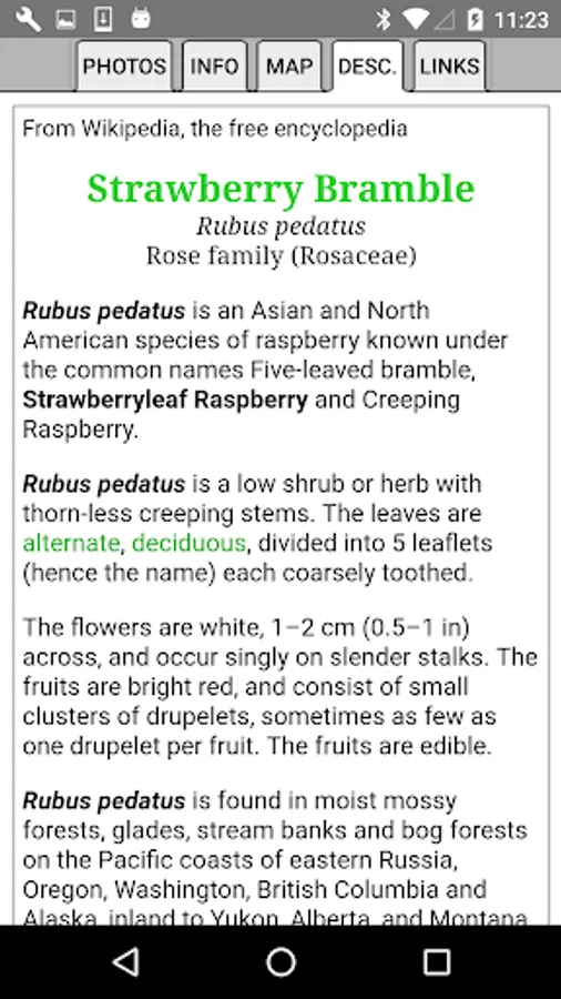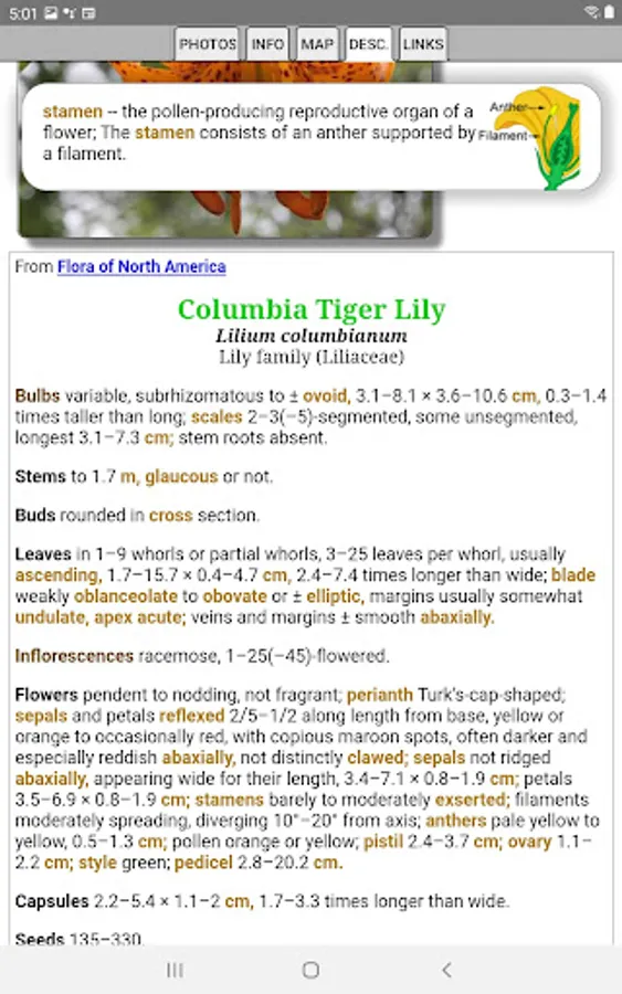 This App helps find and identify plants. When you give the App information about a plant, such as its location, flower color and the time of year, the App will quickly show you which plants match your selections.