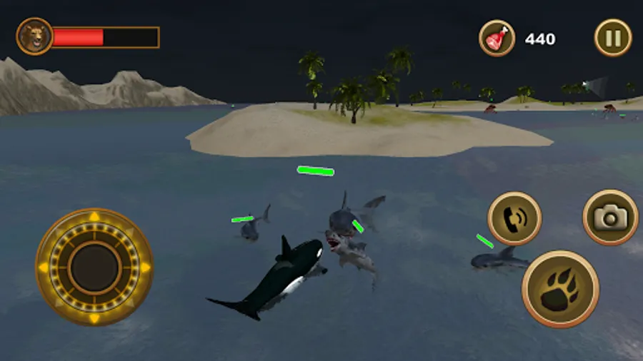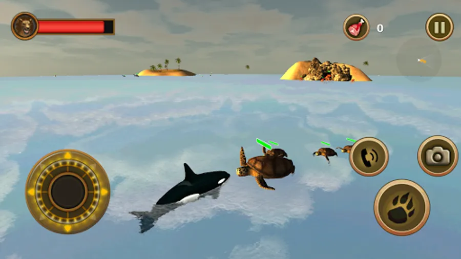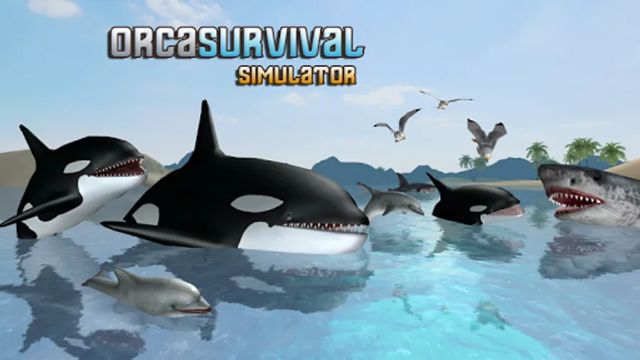 Orca, also known as the Killer Whale, is one of the world's most fascinating and majestic animals. Now you control this gentle giant he tries to survive the wild ocean environment. Fight against, stingrays, octopus, sharks, seagulls, sea turtles, and dolphins. Attack everything the ocean throws your way. This high action Orca simulator is packed with adventure. The game has two goals: To search and rescue all four members of your great white family and to defeat all 5 giant enemy bosses. Survive against dolphin attacks, shark attacks, and even giant bird strikes. The better you get at hunting, the more meat points you will earn, and the faster you will upgrade. Search and explore all corners of the sea map to locate the other Orcas. When you need assistance, you can use the call button to call in the other members of your Killer Whale family.