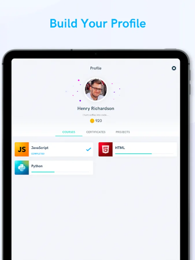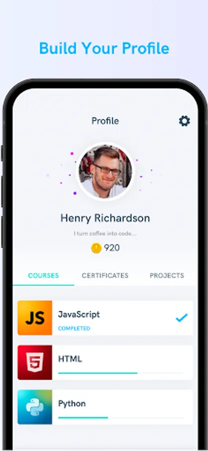 As you complete programming courses, we are constructing a comprehensive profile for you in the background. When you are ready to get hired for your first job, our sophisticated AI algorithm will match you with relevant opportunities!