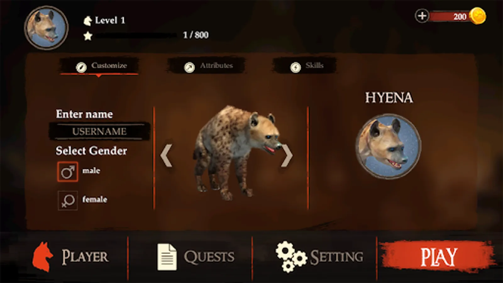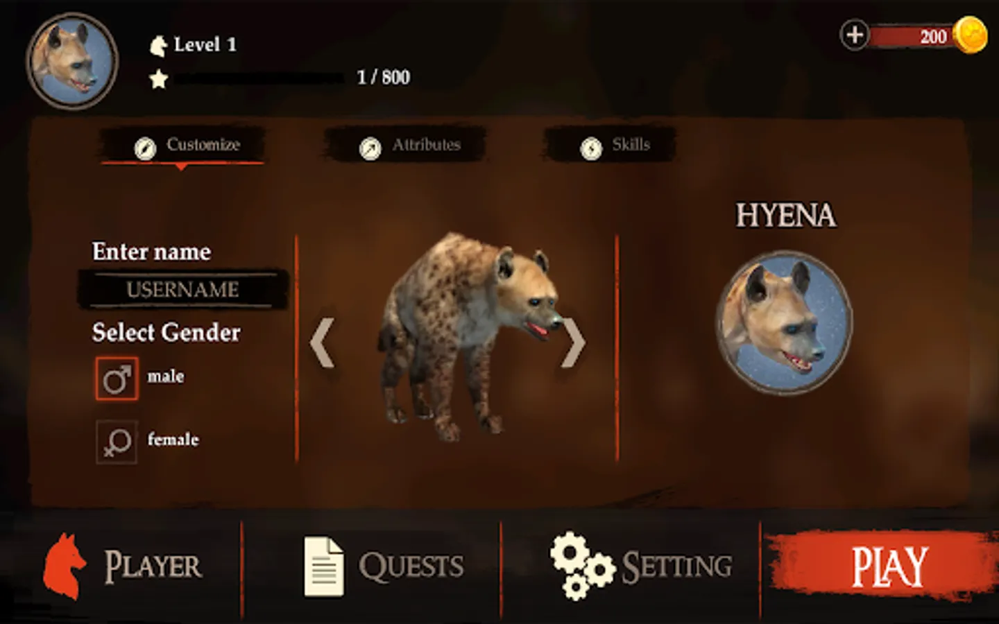 Are you a mighty Gray Hyena? A Dhole Hyena? Or maybe a mysterious Black Hyena resembles you the most? Choose your favorite and create your unique character!