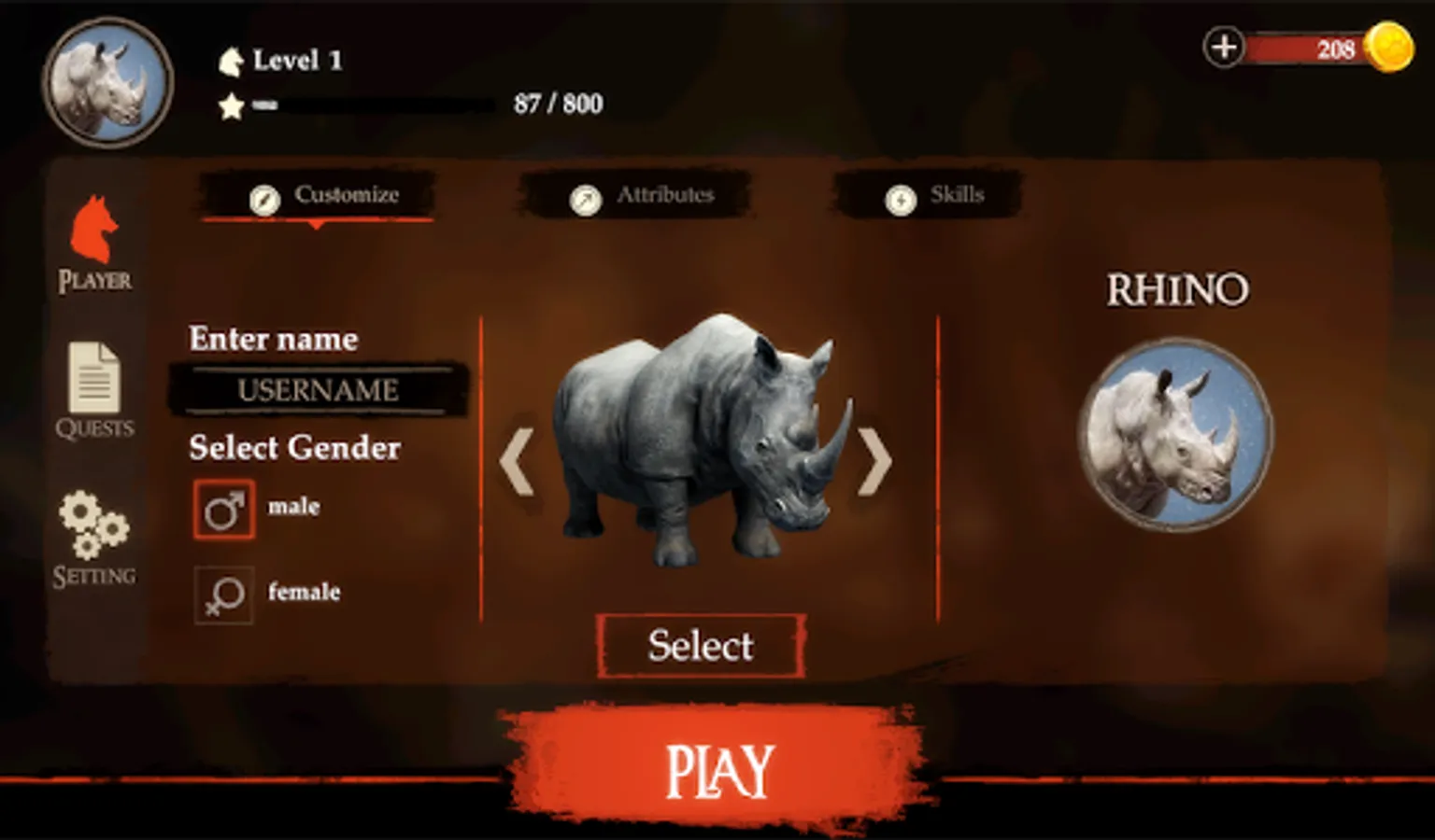Are you a mighty Gray Rhinoceros? A Dhole Rhinoceros? Or maybe a mysterious Black Rhinoceros resembles you the most? Choose your favorite and create your unique character!