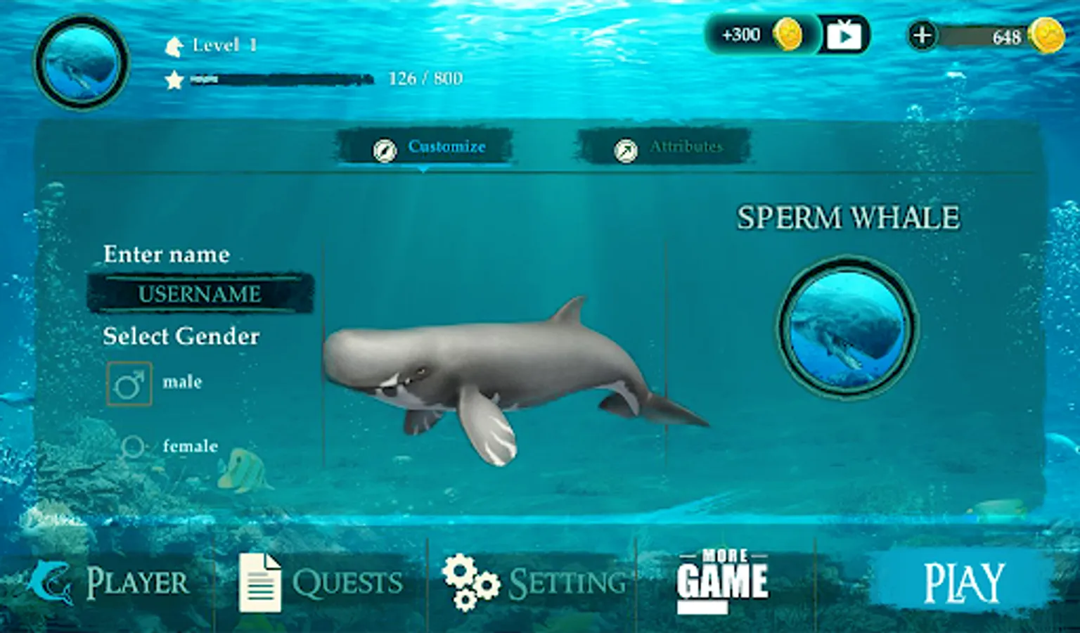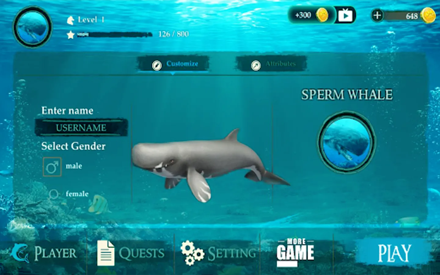 Sperm Whale life is full of adventures.Take control of Sperm Whale and go on a frantic ocean rampage, surviving as long as possible by eating fishs and emeny in your way! Explore a beautiful underwater world and Fight With sharks!
