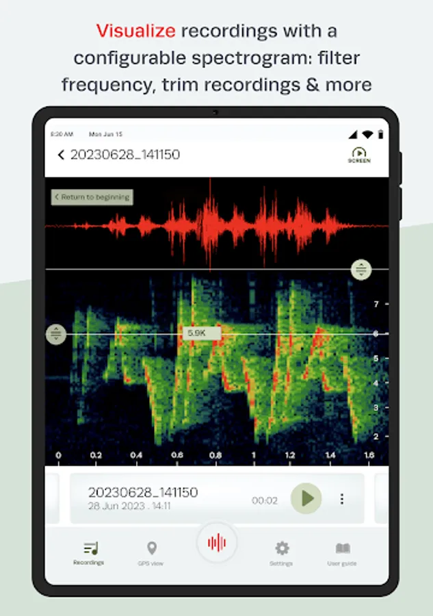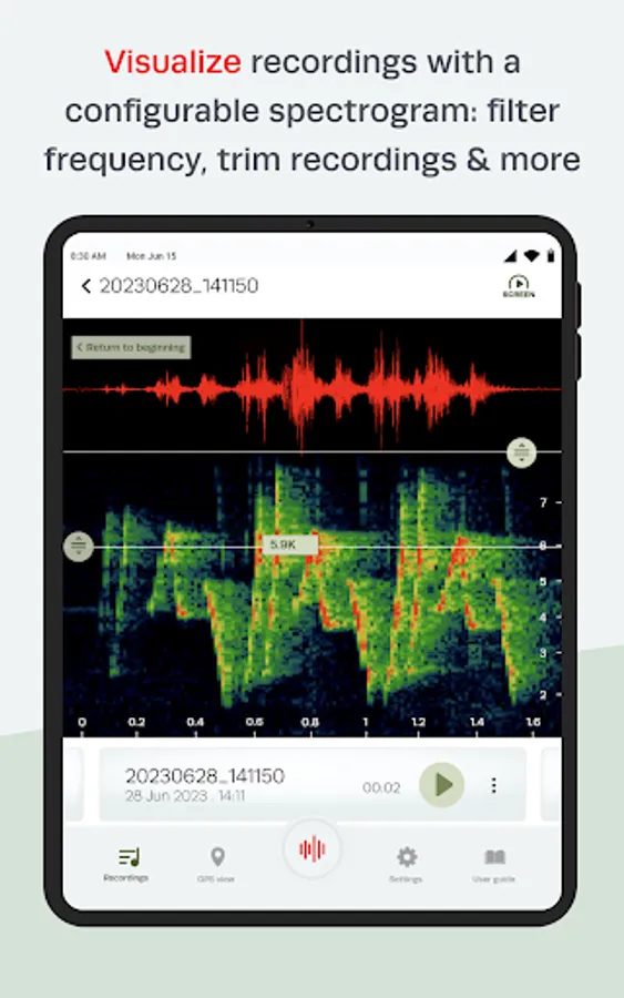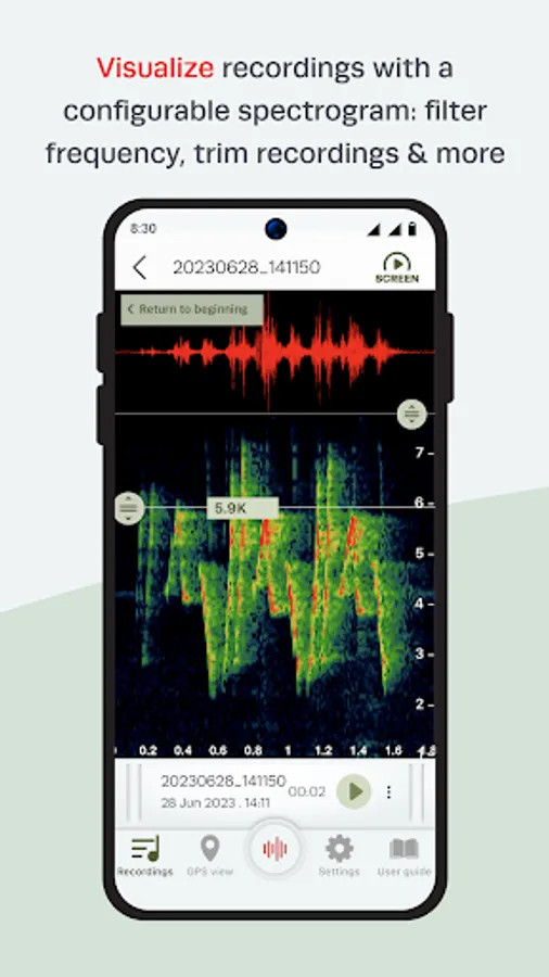 Adjust playback speed, filter frequency by zooming, and trim recordings to focus on the specific sounds that interest you most.