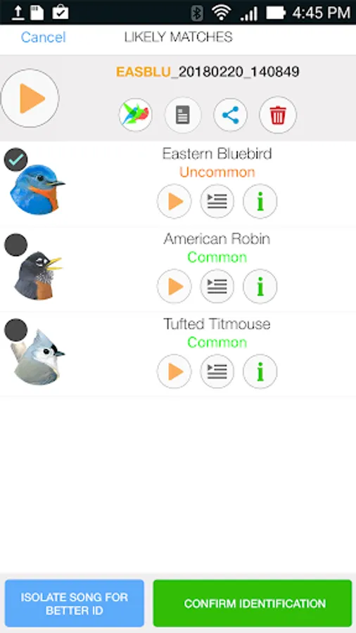 -It is ideal to get a recording of a single bird singing. The app can be confused by noise or background birds but tools are provided to trim and filter your recordings to improve the results.