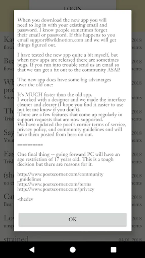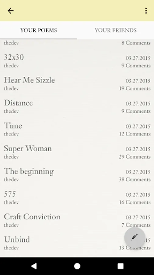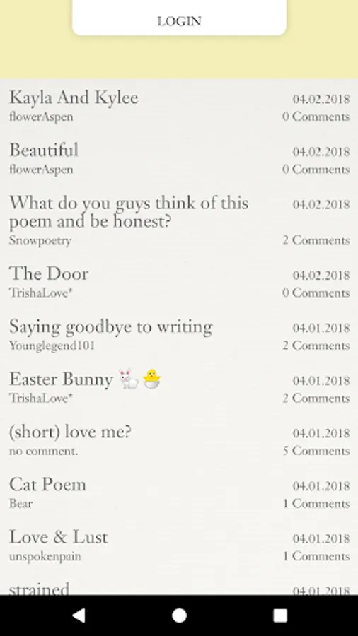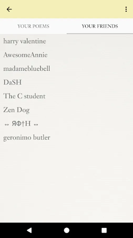 There are really only 3 screens in Poet's corner. A place for you to post your own poem, a place for you to see the latest poems created by other people and a place to show off the poem itself.