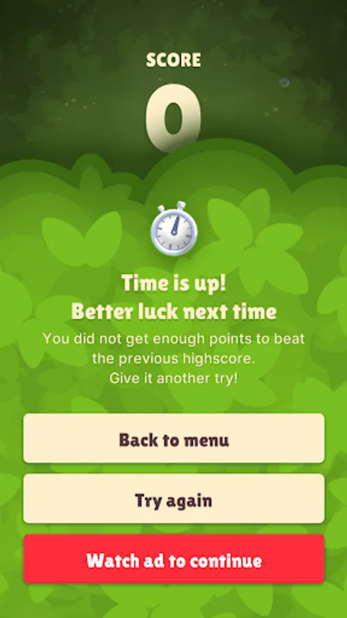 Zen Match is absolutely free to play, however it requires the user to log in with Facebook and have internet connection in order to participate in the leaderboard. The option to continue a game is also present if the user decides to watch an short advertisement after running out of time.
