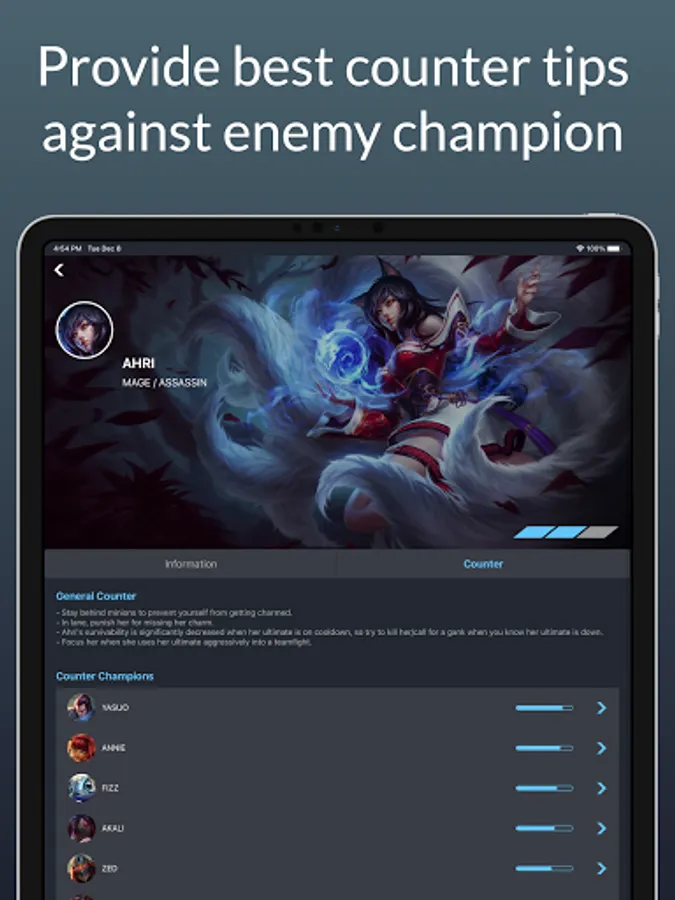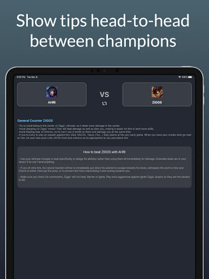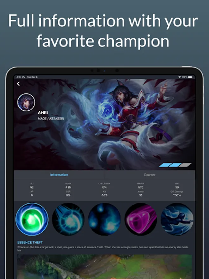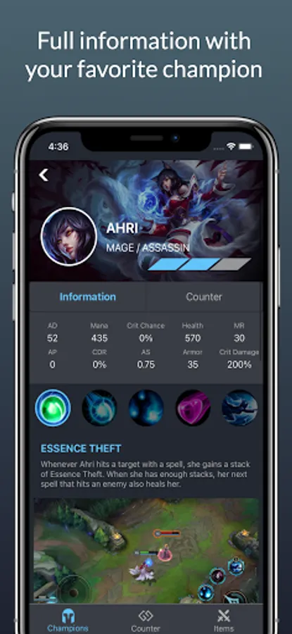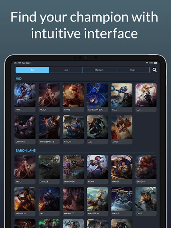 Quickly see all the necessary stats for your favorite League of Legends Mobile champions. Playing will easier when you can access runes and items on your phone. Thanks to this app you will always be a step ahead of your opponents.