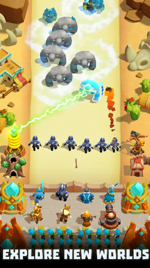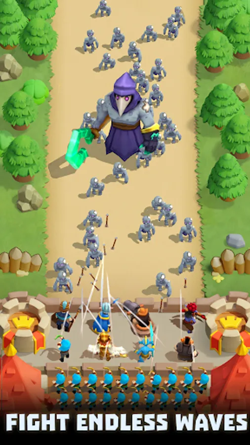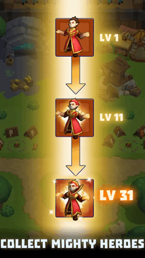 Collect and level up over 60 heroes! Combine their unique skills to perfect your strategy.