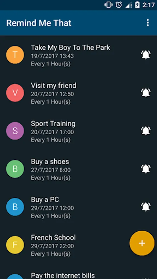 It helps you to add reminders for: