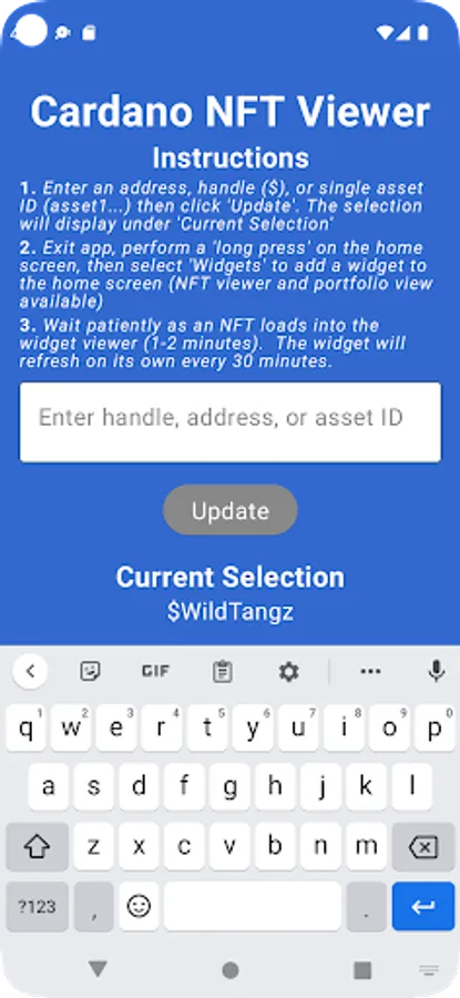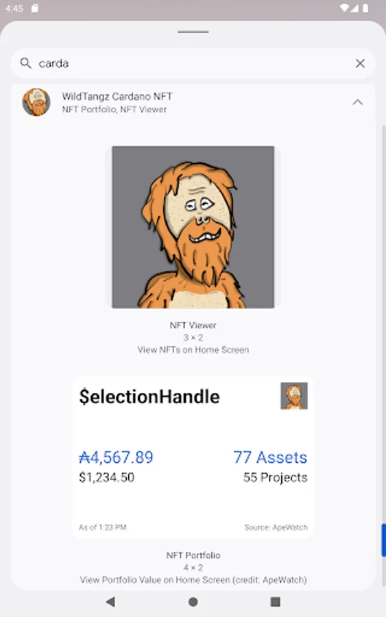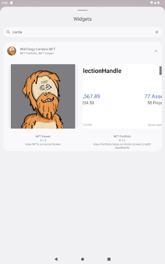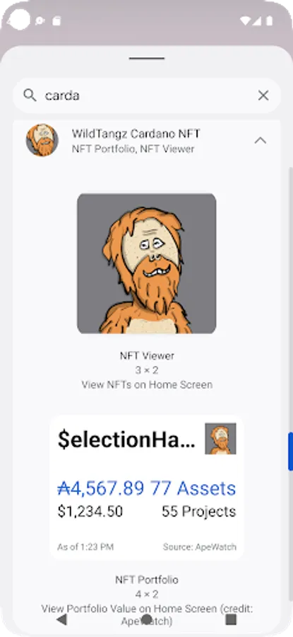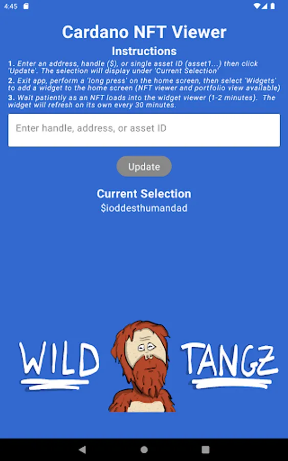 This application is used for viewing Cardano NFTs and portfolio data on your home screen using the iOS widget feature. Currently, Cardano addresses, handles, stake, and direct asset identifiers are supported. Features require various numbers of Wild Tangz NFTs to function correctly (policy ID 33568ad11f93b3e79ae8dee5ad928ded72adcea719e92108caf1521b)