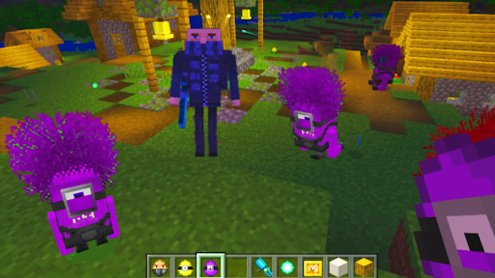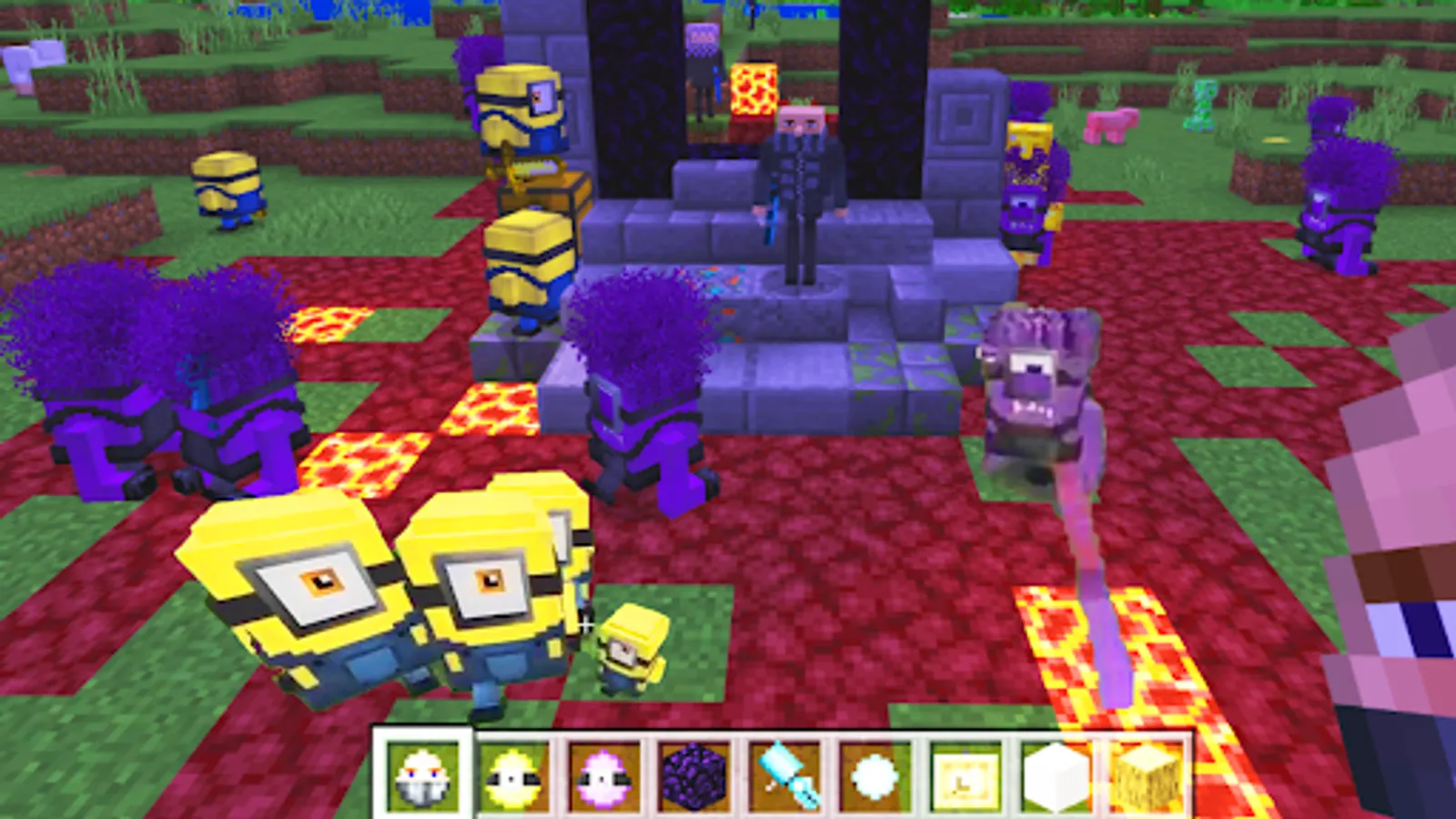 If you are tired of dark mystical stories, space battles or anime games, then we are ready to offer you something new! Do you want an easy, colorful and very funny minon ruch adventure in mcpe? If you like the Despicable Me cartoon or if your minecraft world simply lacks helpers, then this mod is definitely for you! This is a minion paradise in minecraft! Good and evil minons will be added to the game, as well as the supervillain Gru.