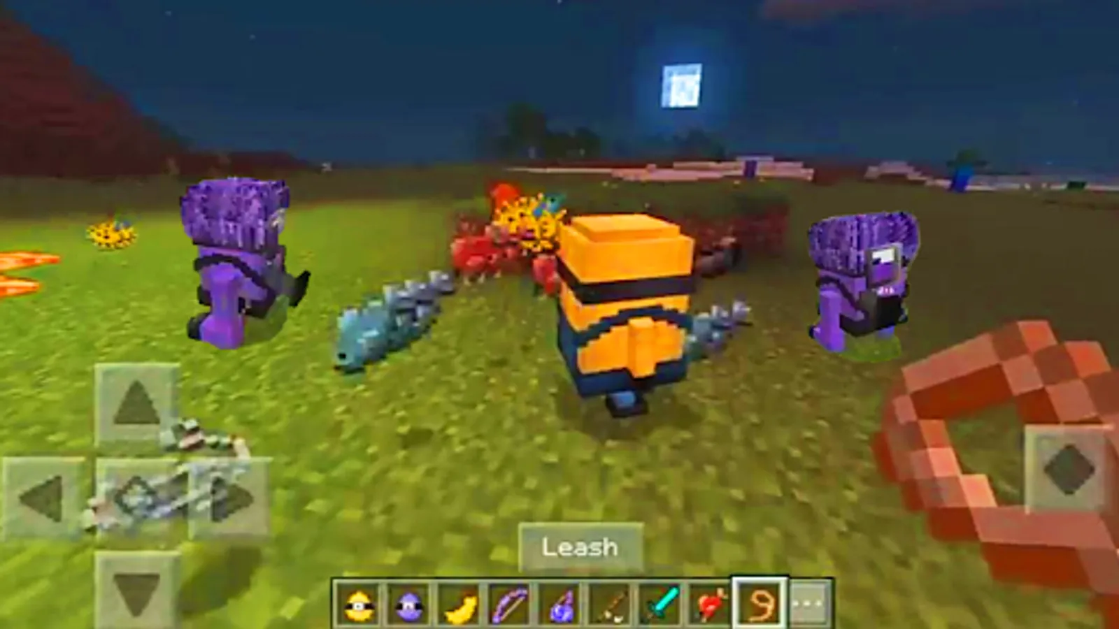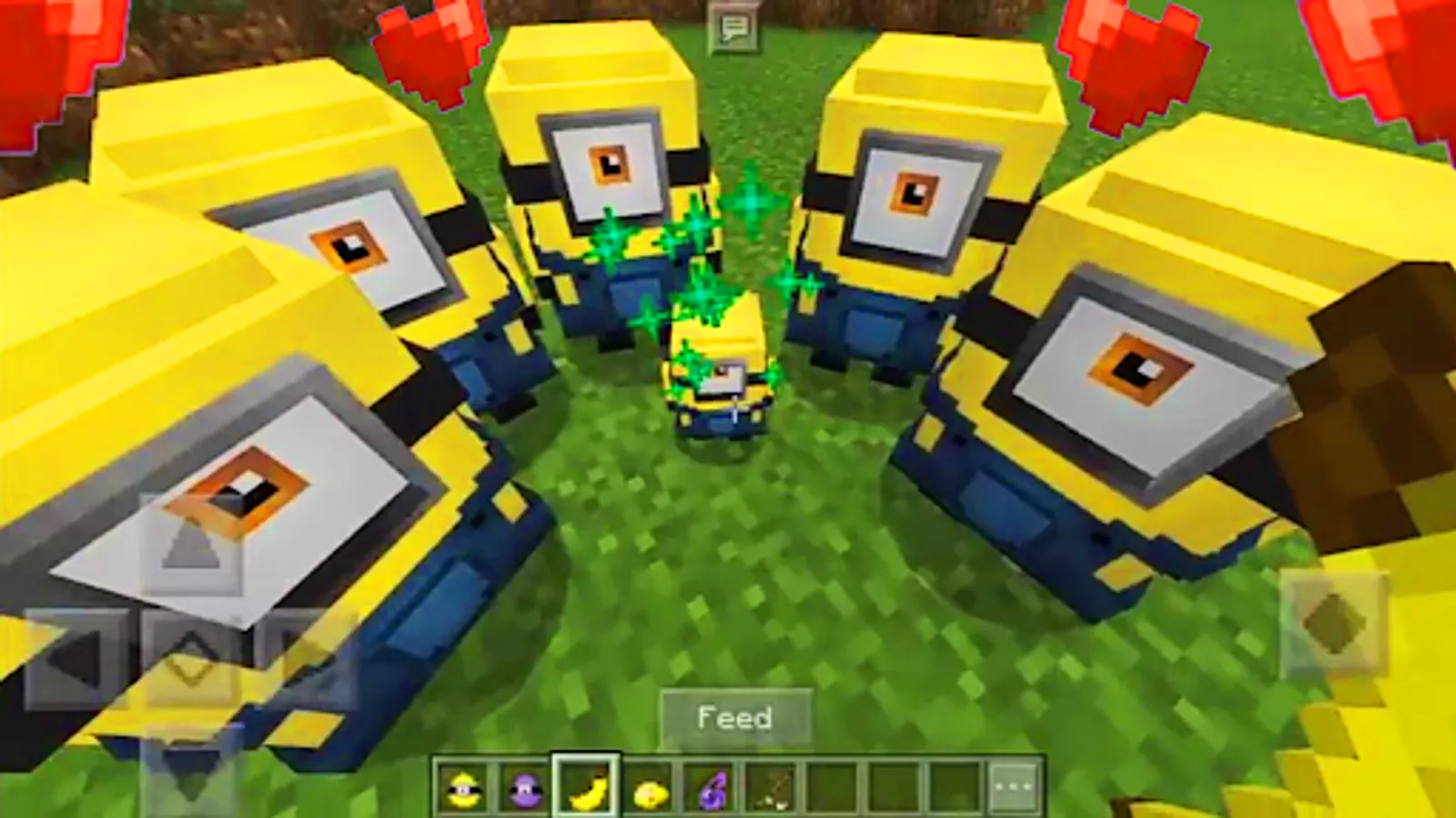 Let's color your minecraft world yellow! Minions are yellow amusing creatures that can be tamed with a banana and given various tasks. You can only tame an adult minion-rush. If you find a small minon, then feed it a banana to speed up its growth process. As soon as he receives the task, the minion rush to immediately complete it. We'll have to wait 1-5 minutes, but from sure he will return.