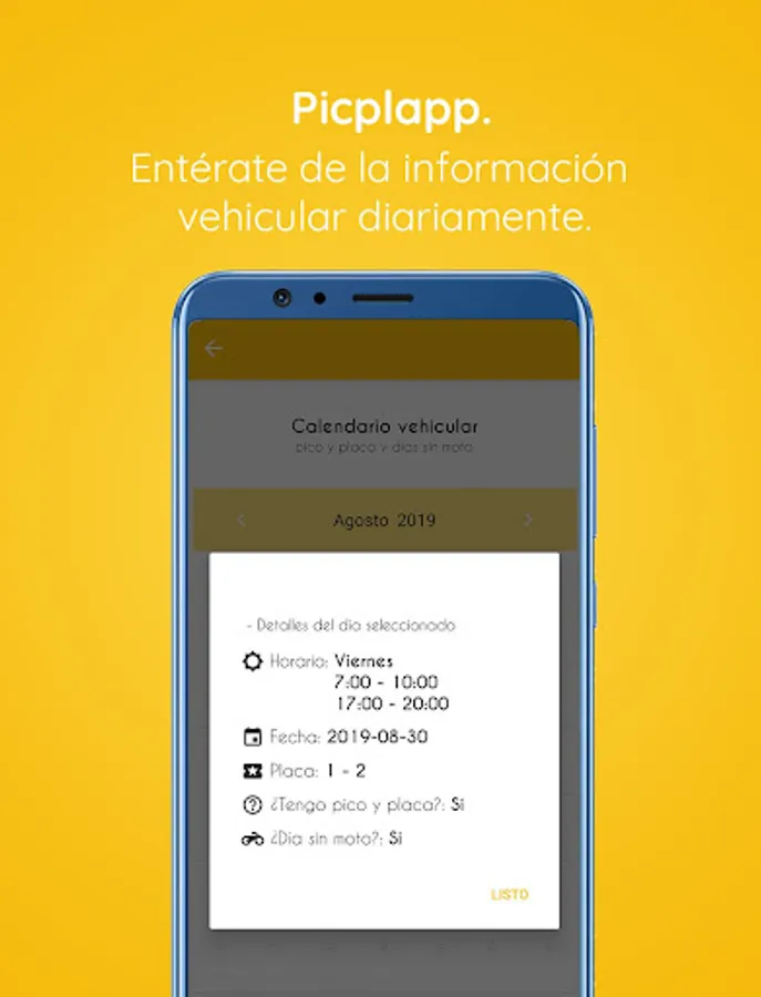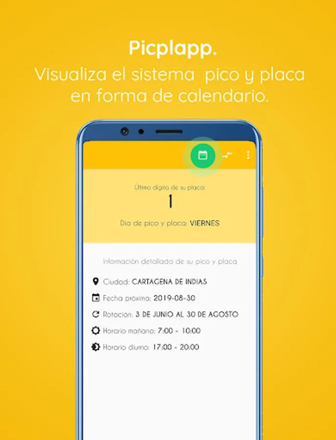 With the PicPlapp application you can get all the updated information regarding the peak and plaque in the city of Cartagena, additionally the application will inform you by notifications on days without a motorcycle in the city of Cartagena.