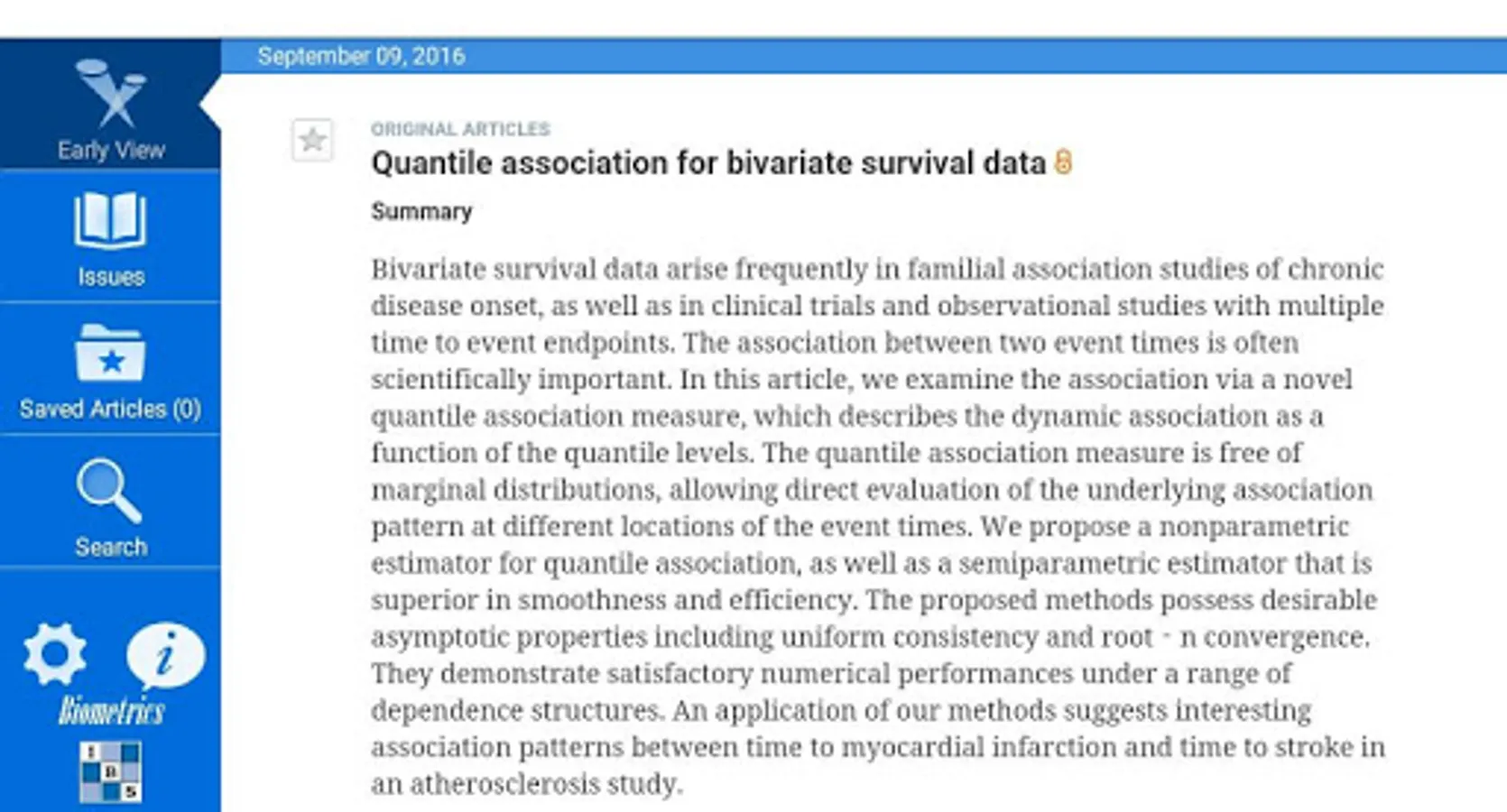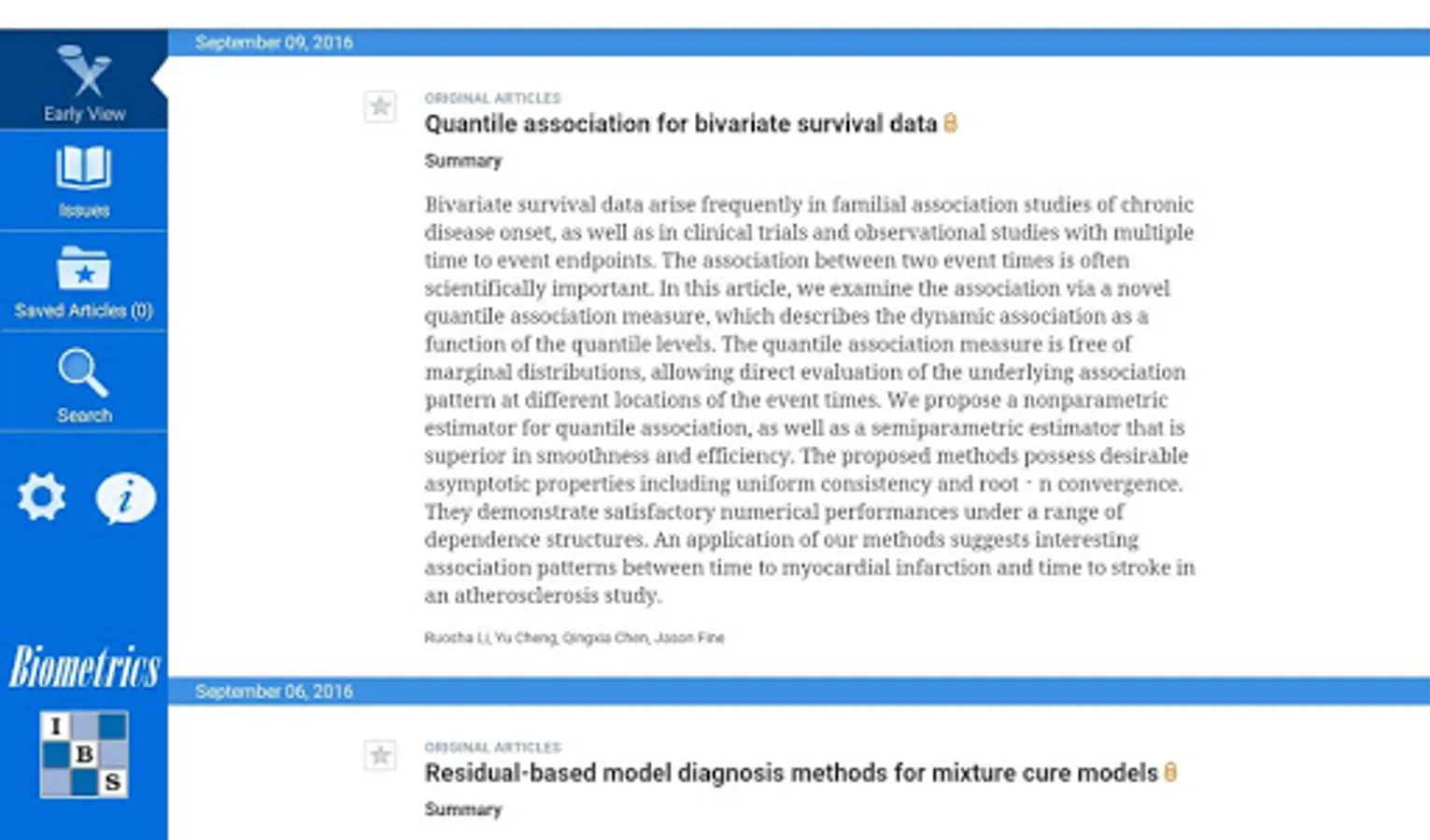 Biometrics publishes papers that promote and extend the use of statistical and mathematical methods in the principal disciplines of biosciences by reporting on the development and application of these methods.
