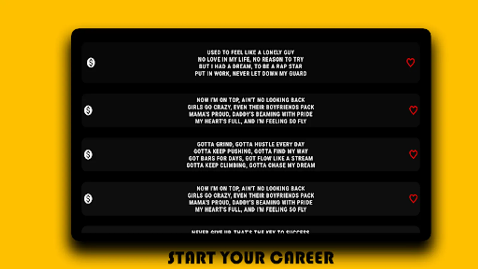 So, if you're looking to start your rap career or just want to have fun rapping with friends, download Rap Lyrics now and start your journey to becoming a rap superstar!