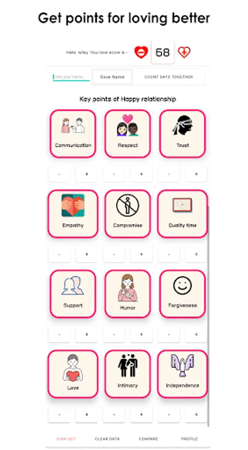It Measures love based on how you treat your partner. The better you treat the more points you earn, From Trust to Compromise to various other factors that helps Strengthening a relation are taken for account.