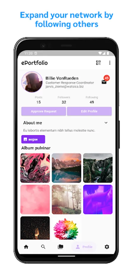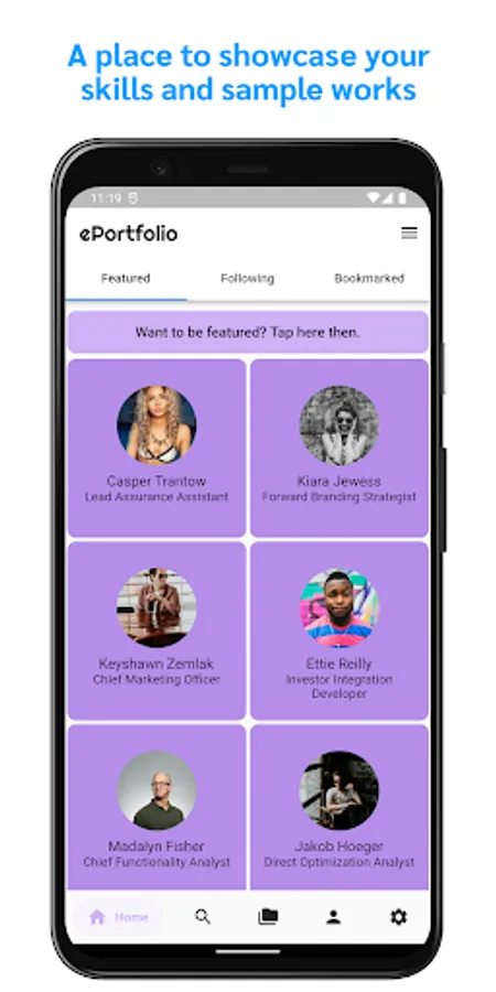 Explore other ePortfolios, view their sample works and interests, and show your support by following them.