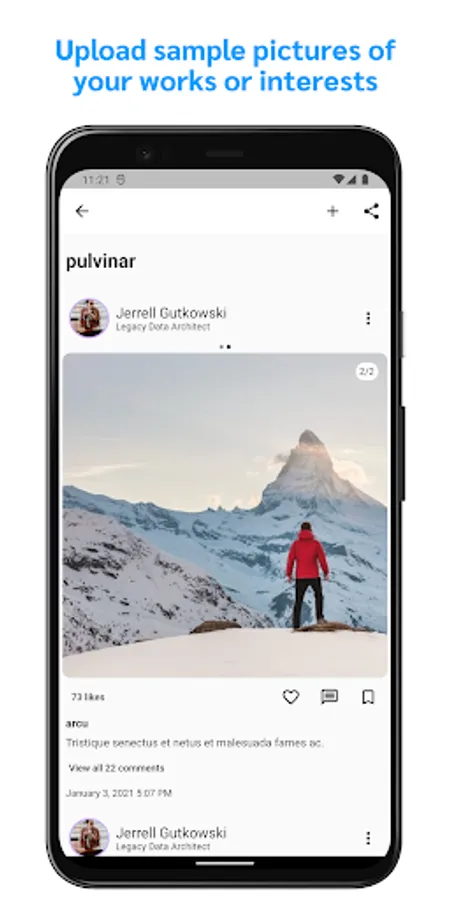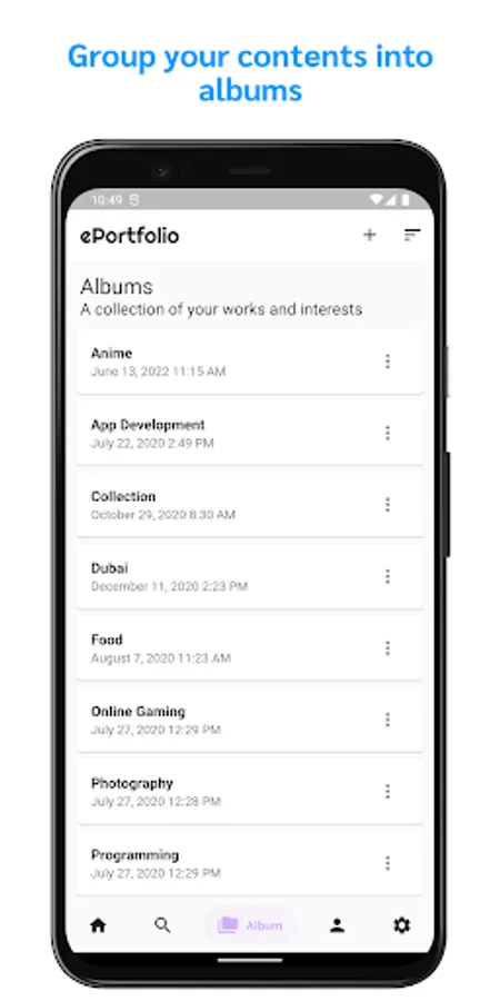 This is where your sample works, services, and interests can be built and found. You can group your content by albums and each content can be added with a description.