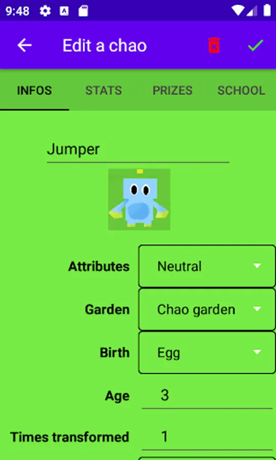 This unofficial companion Application has been designed for the management of the chao in the game about the adventures of sonic (the second).