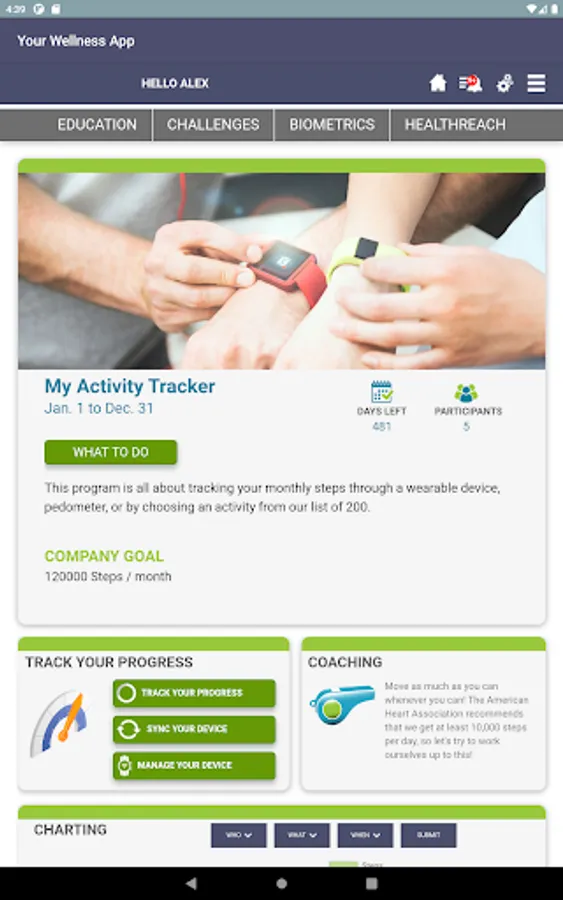 The free Mediterranean Wellness app allows you to access your company's wellness dashboard activities. Get all of your activities at your finger-tips: