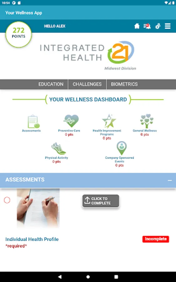 The free IH21 Wellness app allows you to access your company's wellness program through your phone. Access your wellness activities at your fingertips.
