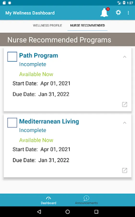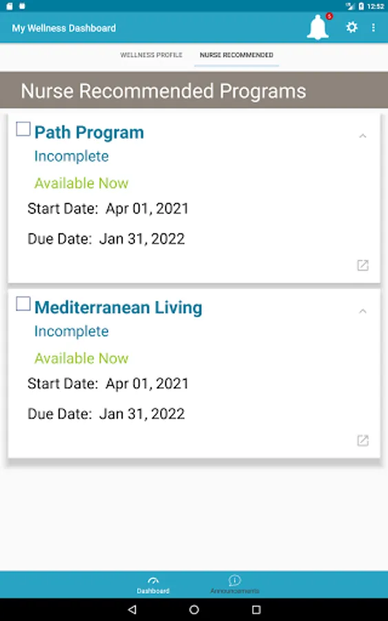 The free Mediterranean Wellness app allows you to access your company's wellness dashboard activities. Get all of your activities at your finger-tips: