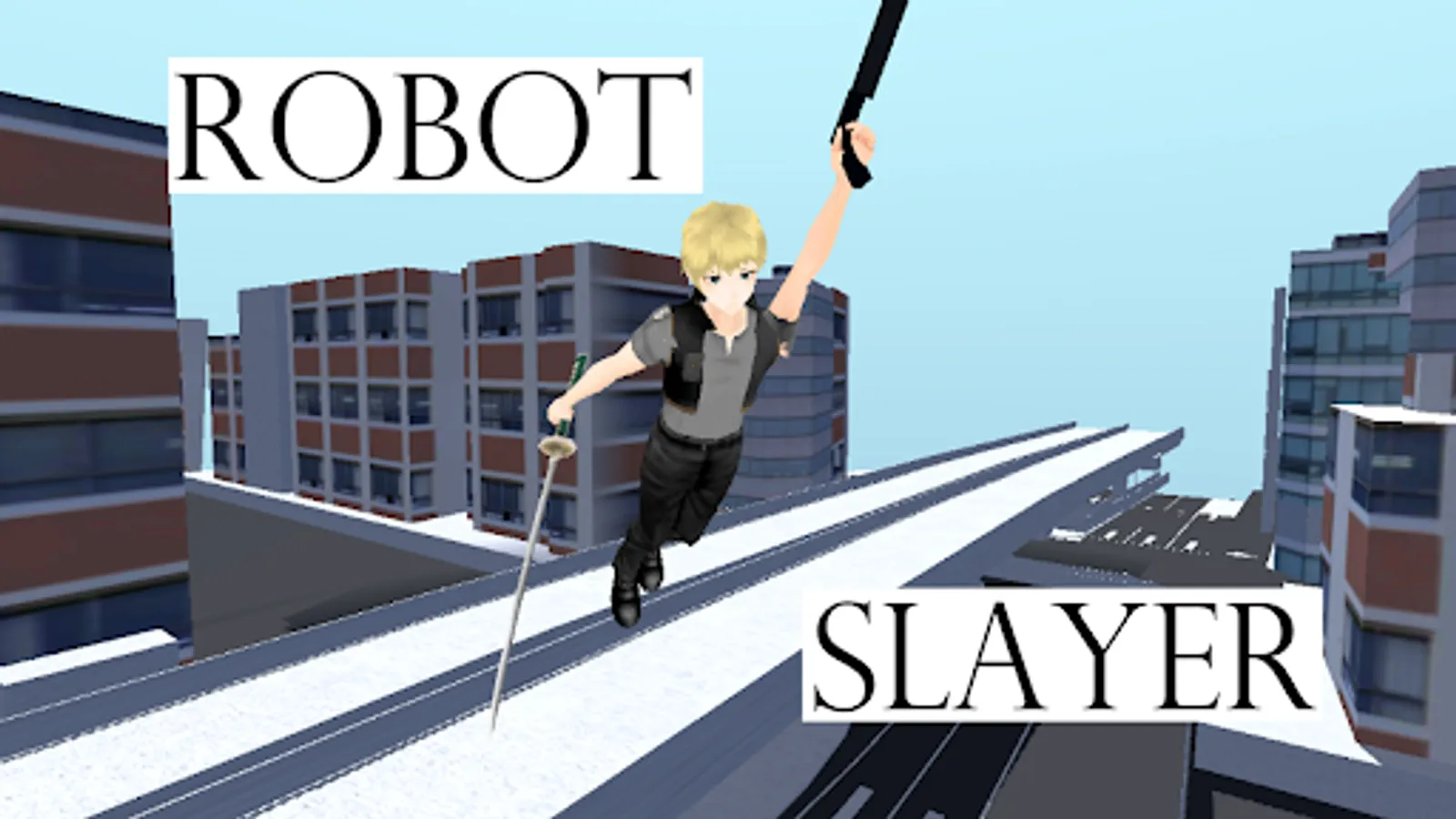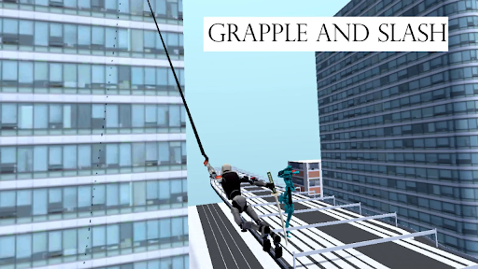 "Robot Slayer" is a third person action game where the player can swing with a grapple and slash robots in their weak point.