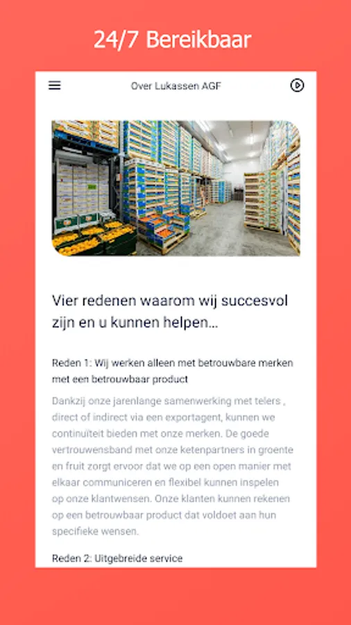 Sooner or later it happens at every fruit or vegetable supplier; a delivered batch is rejected and the batch is written off! Not if it's up to Lukassen AGF; we have the solution! We sell EVERY batch and relieve you in transport, repackaging and sales.