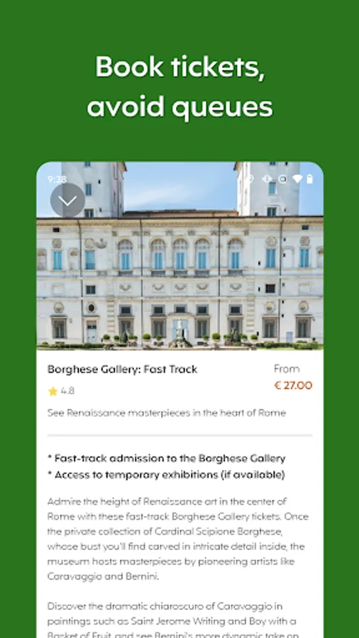 Avoid the queues - book tickets for attractions, museums, and galleries in advance. Find out which locations require tickets, compare prices and choose your perfect tour all within our easy to use, simple travel app.