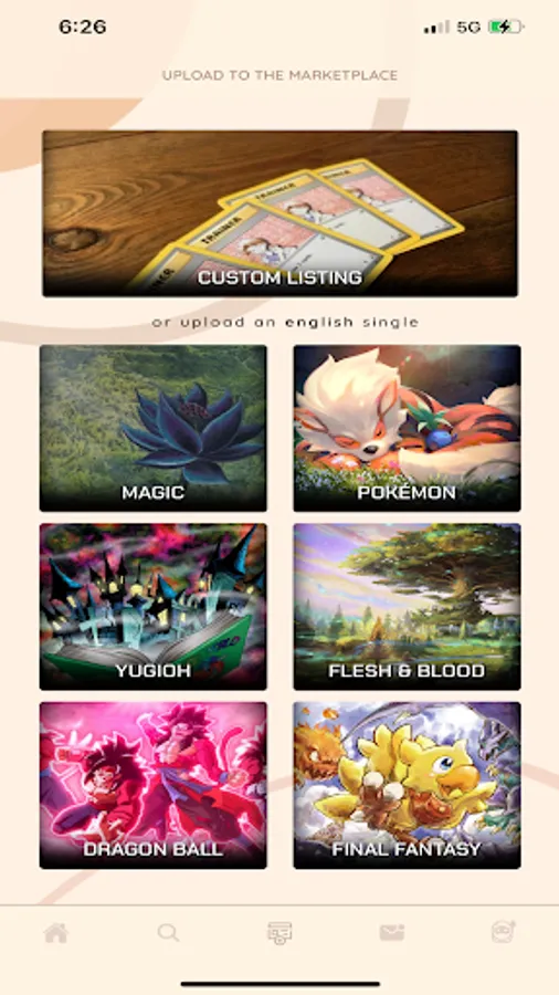List trading cards like Pokemon, Magic: The Gathering, Flesh and Blood and more! Purchase securely though the app with verified sellers and package tracking!