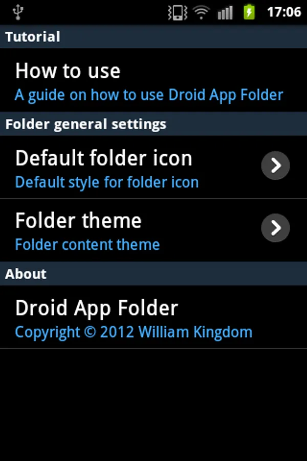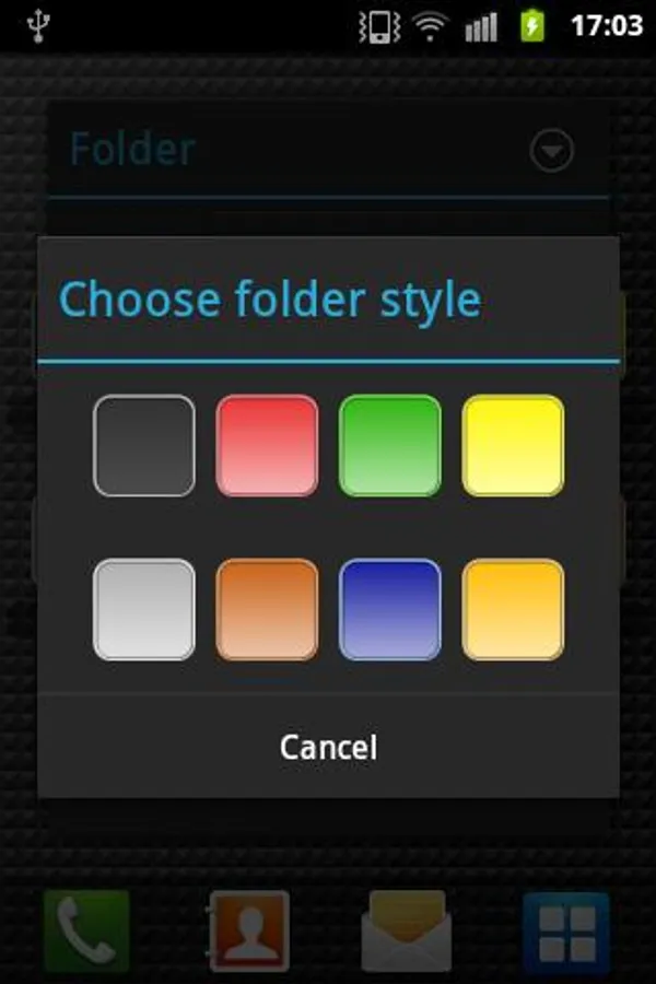 Droid App Folder allows you to created beautiful folders on your launcher desktop.