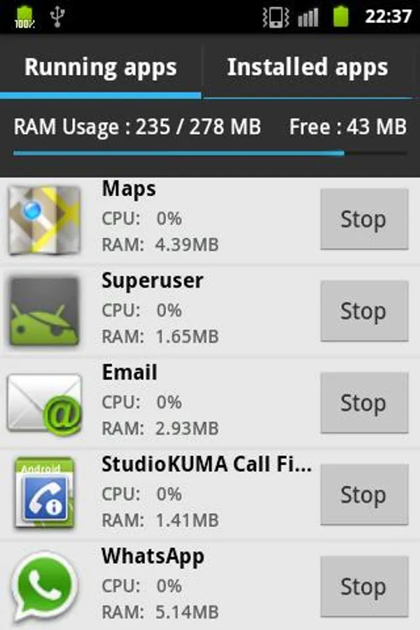 You can view CPU usage and RAM usage for each application, also the detail information about them.