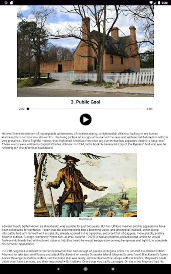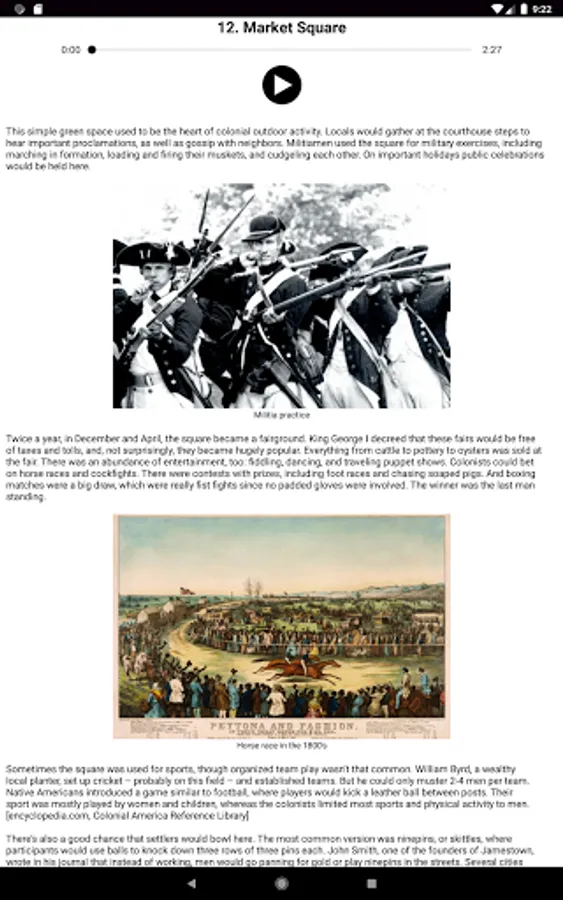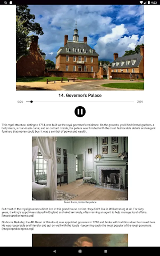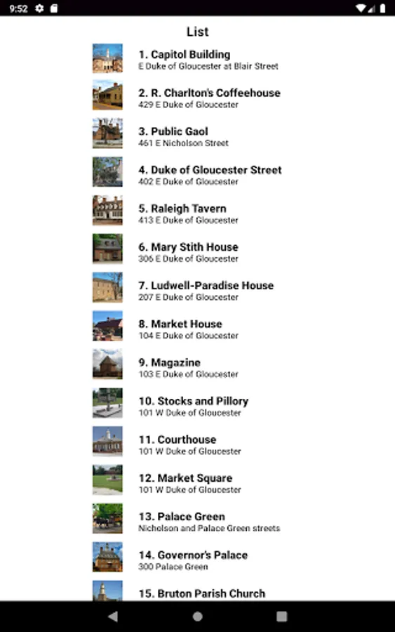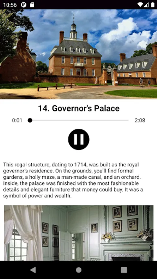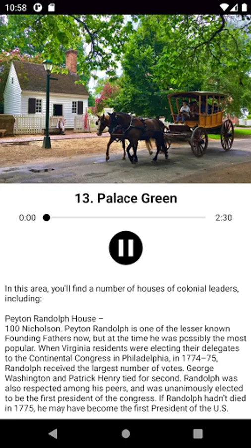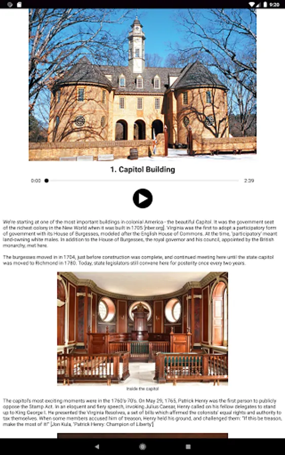 Williamsburg: gentile, gracious, and the heart of American history. The city has been continuously lived and worked in for well over three centuries now! Come see how our colonists worked and played, shopped and celebrated, raised their kids and punished rule-breakers. This tour is about 1.5 miles long and stops at 16 historical sites.