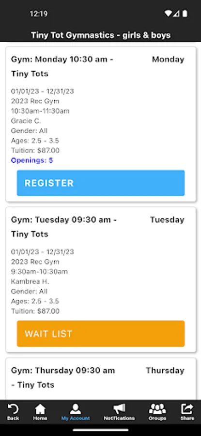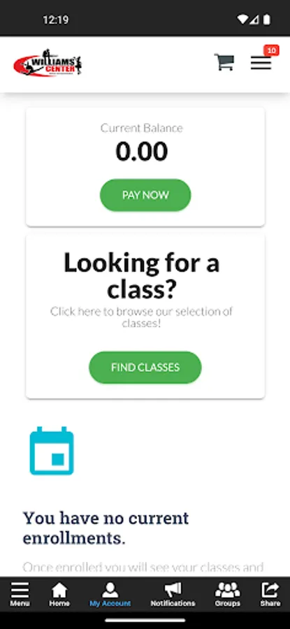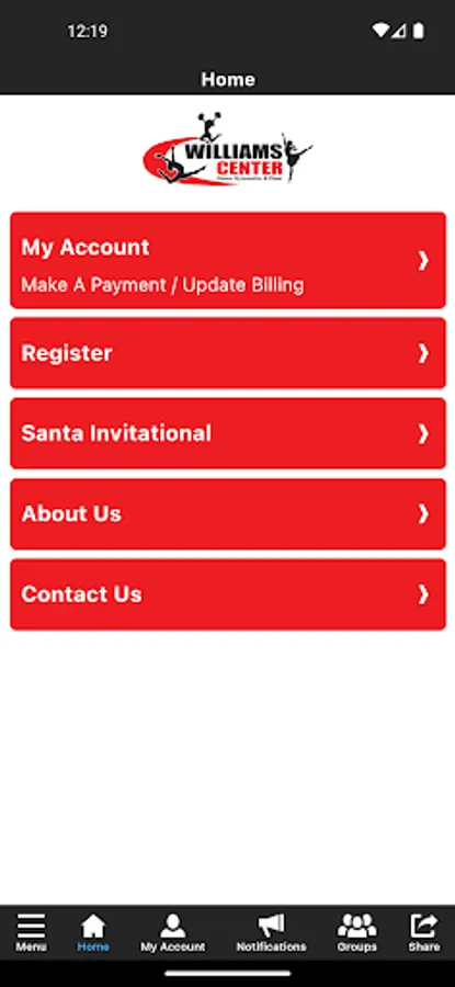 The Williams Center app allows you to manage your account with ease, register for classes, and special events. You'll also receive important notifications about class changes, closings, registration openings, special announcements, and upcoming events.