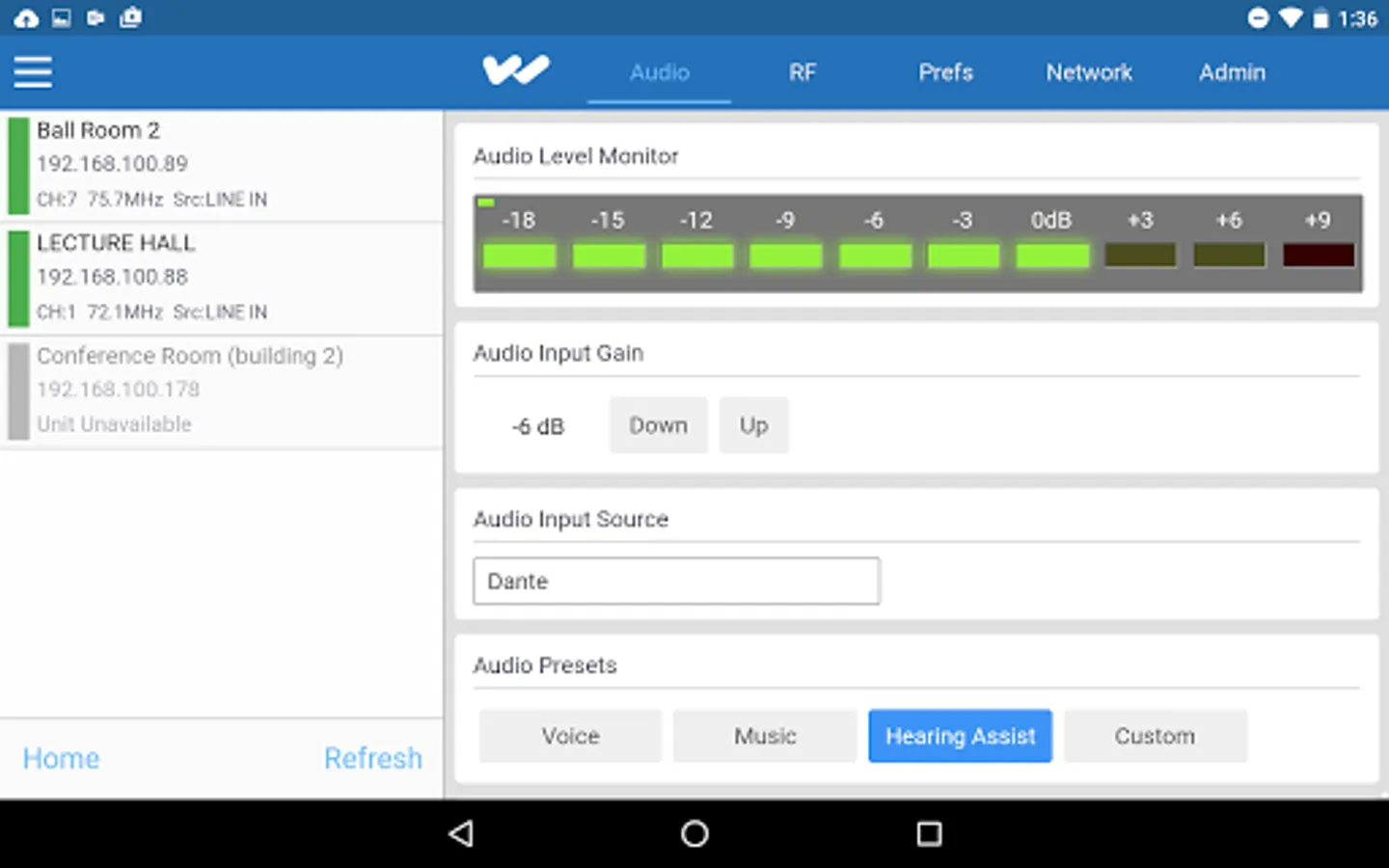 Need to change applications, input or volume, simply use the App while in the venue to hear the changes as they happen. No more need to use a second person or to run back and forth from the rack to the venue.