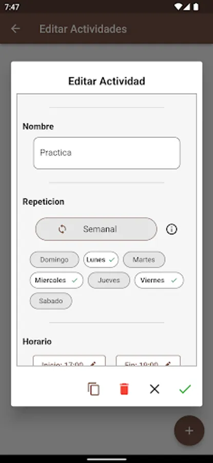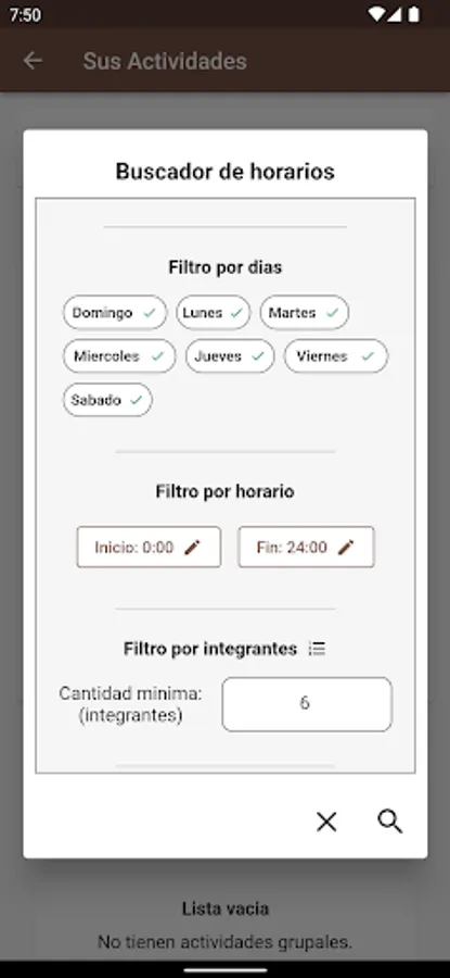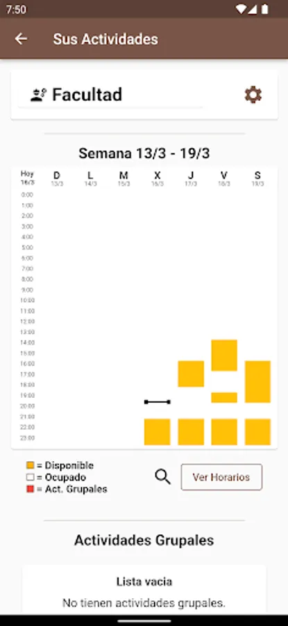 Once the group availability is obtained, it will be possible to search for schedules and create group activities, of which the members of the group will be notified, and they will be able to confirm attendance. We hope this will make the process of finding a common schedule easier.