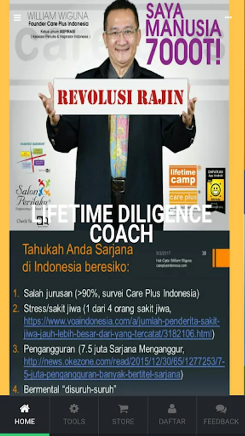 With the background and experience of leading the industry with more than 35 thousand employees and relations in Indonesia for over 26 years from 1990, William Wiguna understands the source of problems in a company or organization or family (as the first educational institution) is the imbalance between SKILLS / KNOWLEDGE TECHNICAL (SMART) and NON-TECHNICAL BEHAVIOR (one of them is RAJIN's) of our HR.