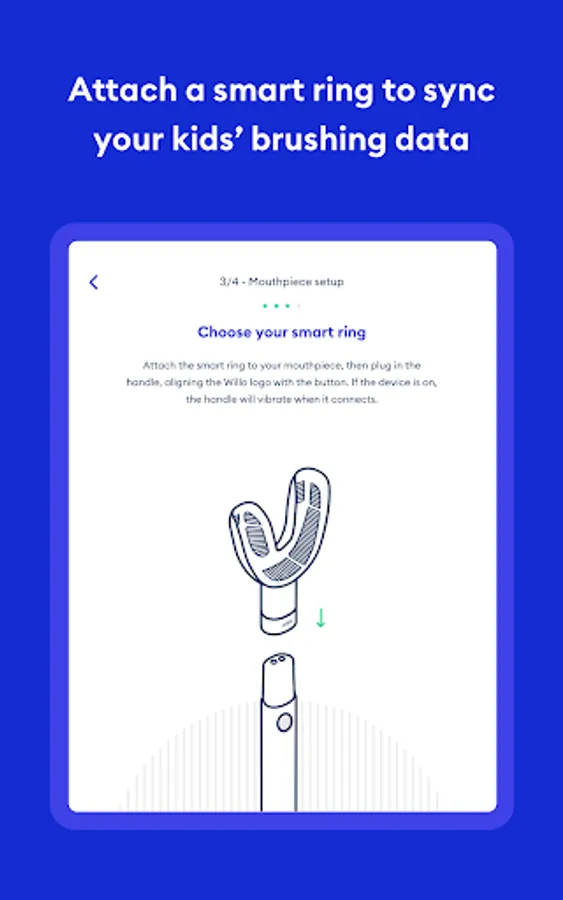Willo is an oral care robot that brushes your teeth for you. Sync with smart rings to add multiple brushers and manage your unique profile, connect and track your brushing data, and customize and save brushing cycles. Get ready to let Willo do the work.
