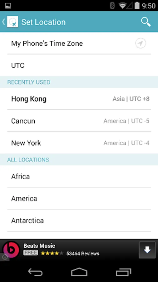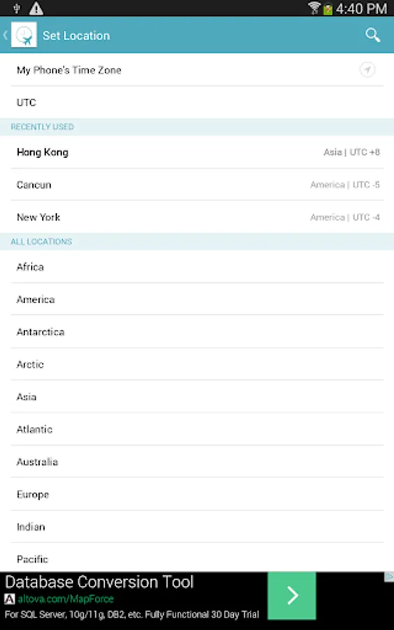 In the "Recent" section, users can quickly access their 3 most recently used time zones.