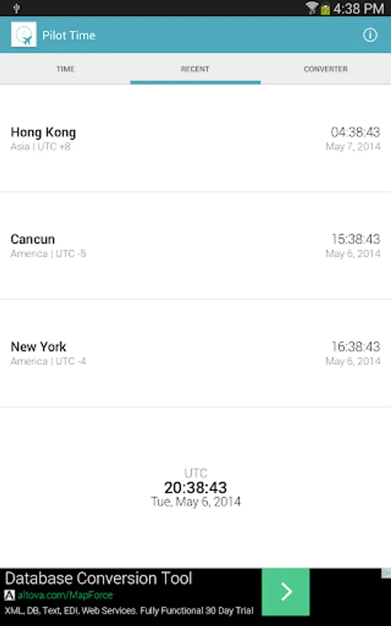 Pilot Time is a simple free tool to quickly access local, military and UTC/GMT/Zulu time with the touch of one button. Developed by pilots who can never remember the current UTC/GMT/Zulu time conversion when they need it.
